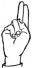 На ћирилици написано ИСИДОРА КРГА састоји се из 11 слова [?]. Исписано ћириличном једноручном азбуком за глувонеме: